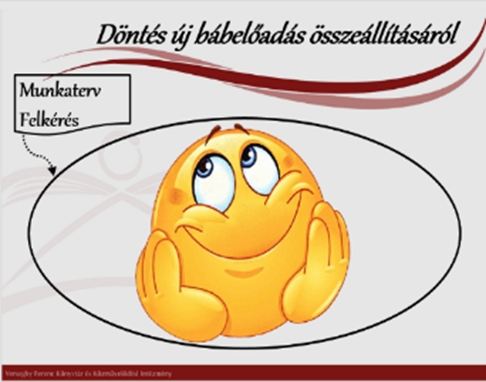 Döntés új bábelőadás összeállításáról: A gyermekkönyvtár adott évi munkatervében rögzített, hogy évente mennyi új bábelőadást tervezünk. Ettől eltérhetünk belső vagy külső partneri felkérés esetén.