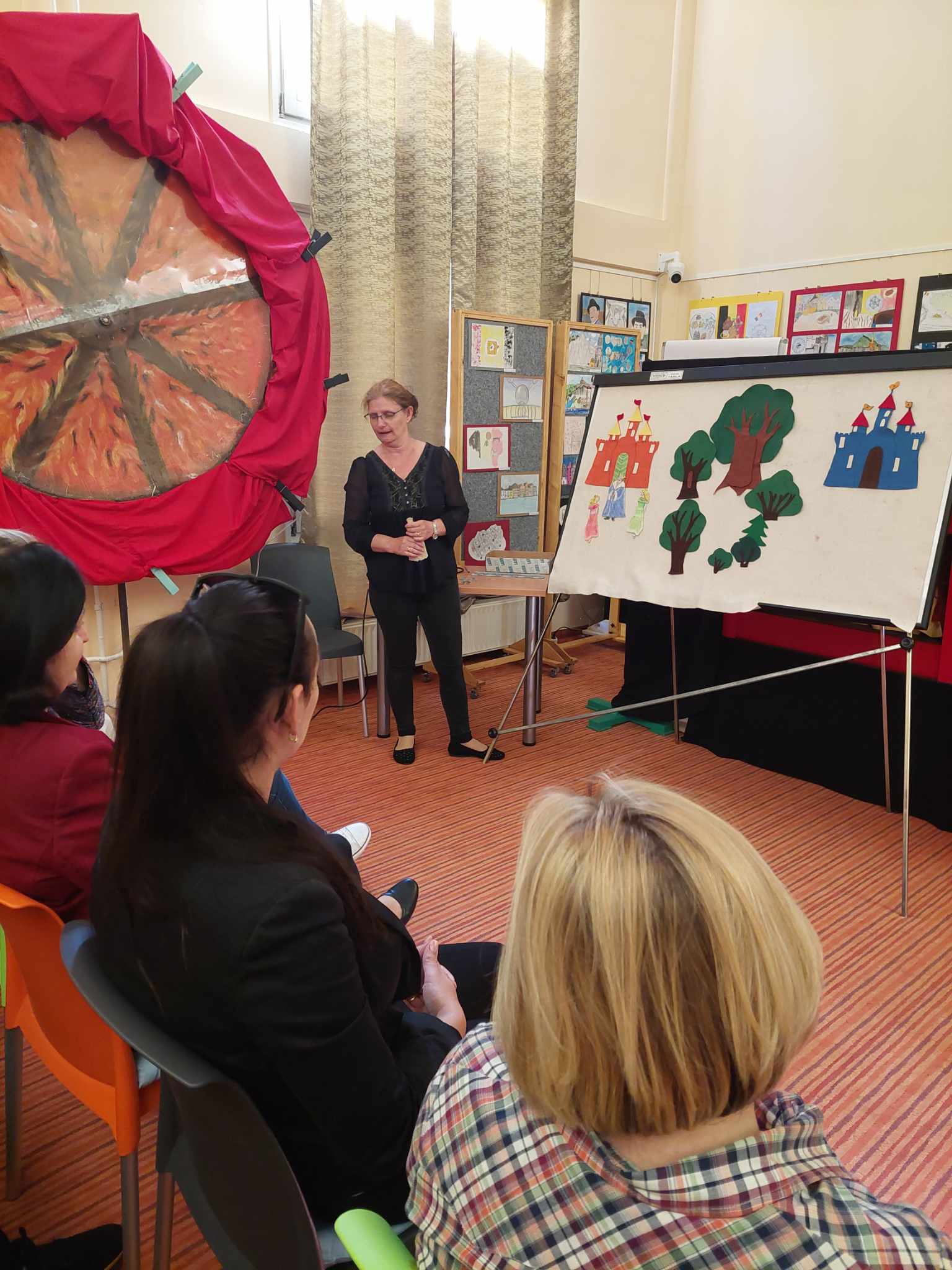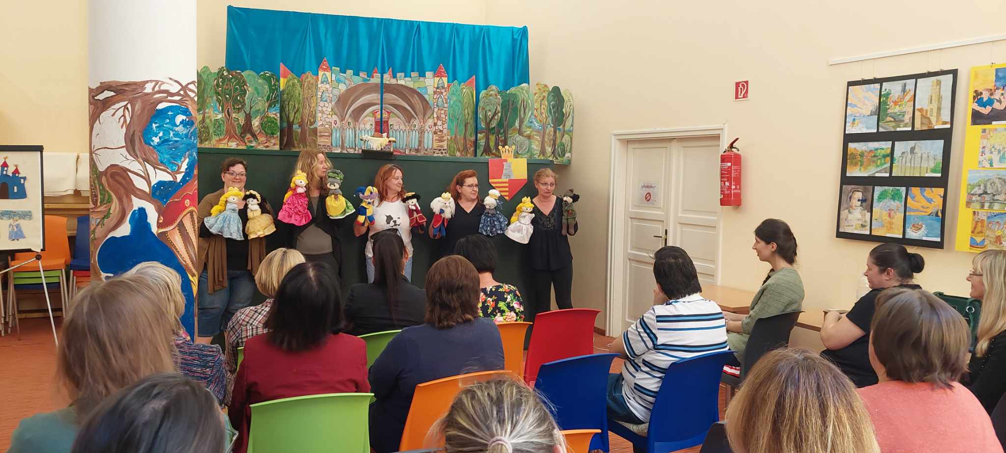 A mesélés után a huszonöt lelkes kolléga azt is megtudhatta, nálunk hogyan lesz egy meséből bábelőadás.